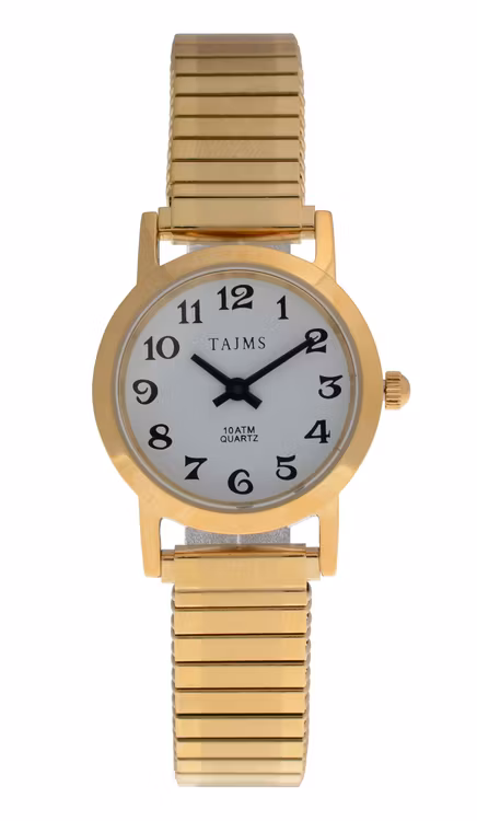 Damklocka 26mm - 61243F 695.00 SEK @Klockarmband Flexlänk Läder I lager. Lägg i varukorgen Dela Artikelnummer: 61243 Information Urtavla: VitGlas: MineralglasDiameter: 26mmTjocklek: 8.0mmBoett: StålBoett färg: GuldArmband: FlexlänkBandbredd: 14mmUrverk: Japanskt Miyota Quartz Datum: NejVattenresistans: 10ATM